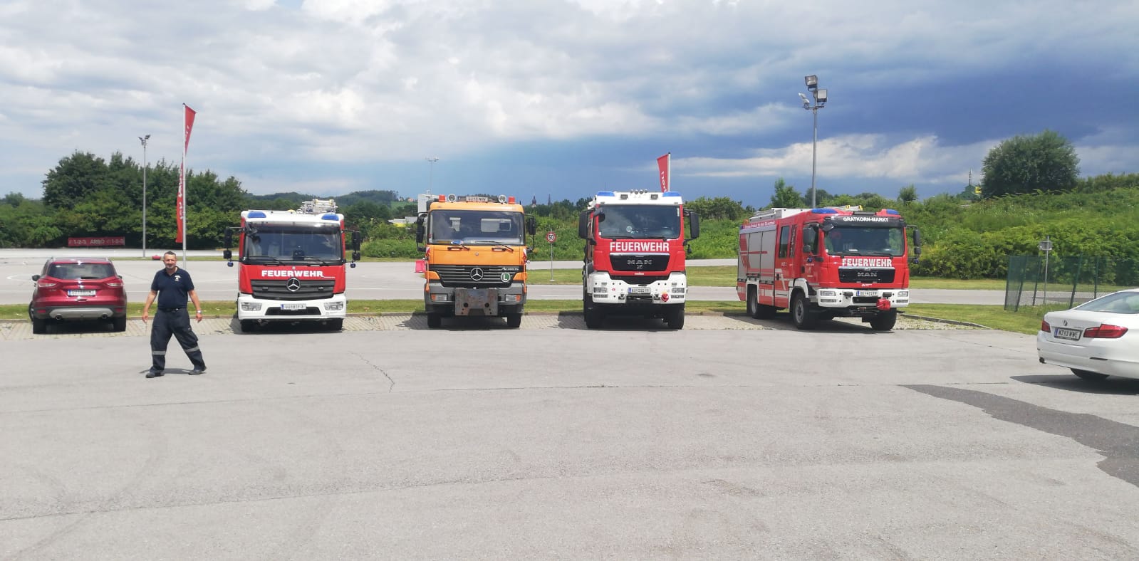 Das richtige Handeln in gefährlichen Situationen, wie z.B. das korrekte Verhalten bei Aquaplaning wird bei unserem Fahrsicherheitstraining auch mit LKWs und Bussen trainiert. In diesem Video wurde das Training mit den großen Einsatzwägen der Feuerwehr absolviert.